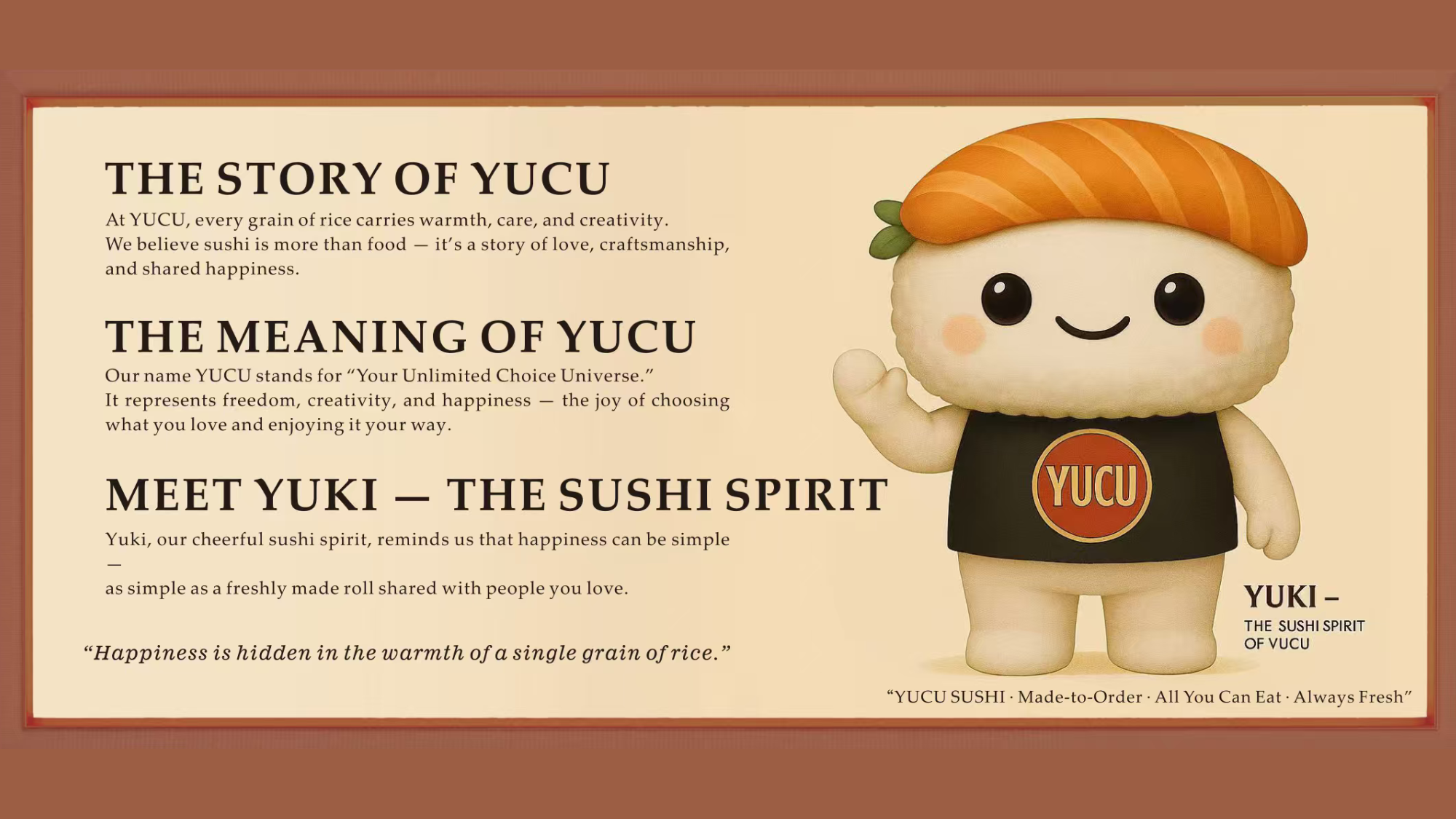 YUCU was born from a simple idea: sushi should be more than just food — it should be an experience.
